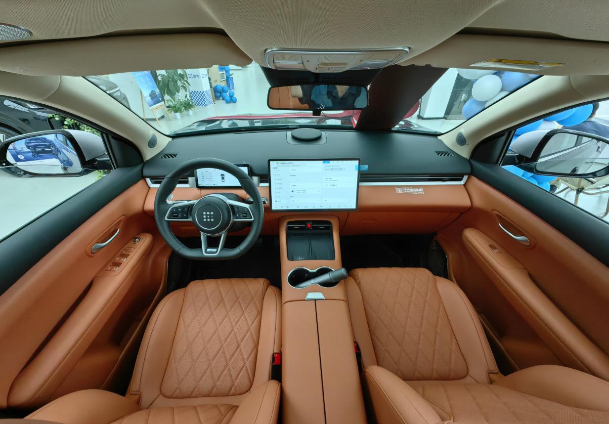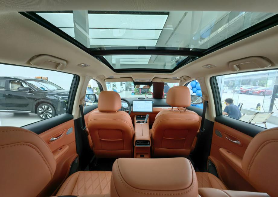 有一说一,这款蓝电E5 PLUS也有着一些亮点。首先,这款新车采用的是5座与7座并存的设计。很难想象,这款新车的轴距不到2.8米,但是厂家却给出了大7座的配置,座椅布局是2+3+2的7座设计。并且我们在体验过程中还发现,该新车的前排座椅是带有腿托功能的,而且是那种淡棕色的内饰,看起来很高档。最让我意外的是,该新车居然还拥有双层玻璃的设计,能够很好的让车内保持安静,这一设计在十万元的价格区间,还确实没想到。